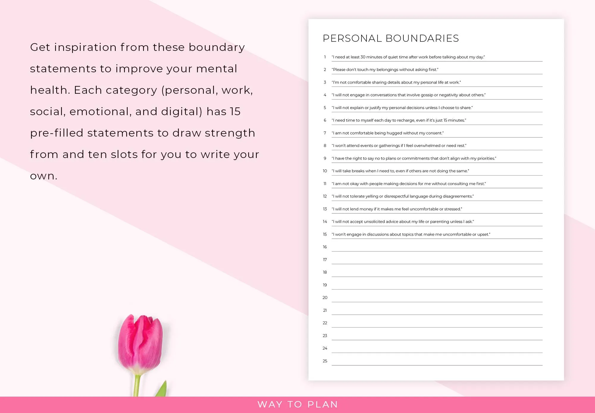 - Write your own personalized boundaries.